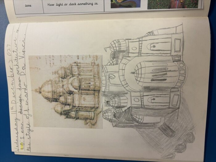 - to create sketch books to record their observations and use them to review and revisit ideas