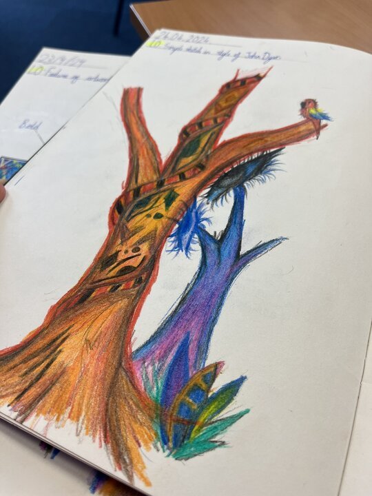 - to develop a wide range of art and design techniques in using colour, pattern, texture, line, shape, form and space